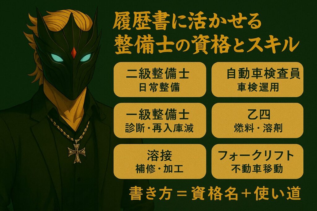 この記事では、整備士としての履歴書の書き方から志望動機、自己PR、書類選考で有利になる資格まで徹底的に解説する。